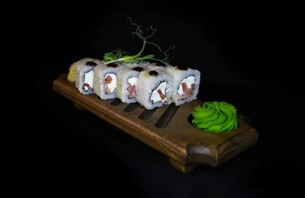 Классический холодный ролл. 8 кусочков. Состав: рис,нори,свежий огурец,сливочный сыр,курица,игра масаго. * Добавьте к вашему заказу имбирь,васаби,соевый соус.(Эти позиции добавляються вами по желанию и идут за отдельную стоимость)