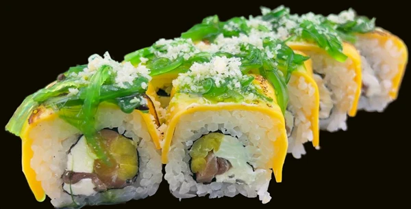 ХОЛОДНЫЙ РОЛЛ 8 КУСОЧКОВ СОСТАВ:РИС,НОРИ,ТАКУАН,ЛОСОСЬ,СЛИВОЧНЫЙ СЫР,СЫР ХОХЛАНД,ЧУКА,ПАРМЕЗАН.