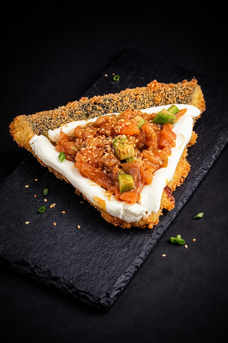 ЖАРЕННО - ХОЛОДНЫЙ 1 КУСОЧЕК СОСТАВ: РИС,НОРИ,СЛИВОЧНЫЙ СЫР,ЛОСОСЬ,АВОКАДО,СОУС ТЕРИЯКИ,КУНЖУТ КИМ ЧИ.
