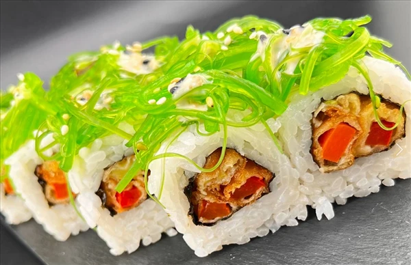 Состав:рис,морковь,кабачок и перец болгарский жаренные в кляре,чука.